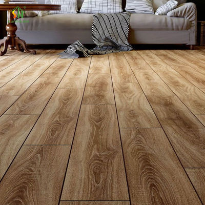 Durable waterproof SPC vinyl flooring with parquet surface treatment, ideal for hotel applications.