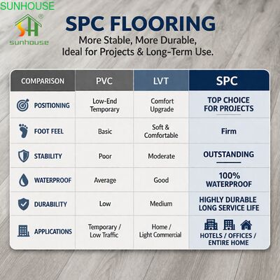 Разработанный для подрядчиков, застройщиков и региональных дистрибьюторов, которые не могут позволить себе неудачу с напольным покрытием в середине строительства, SPC-пол Huiju с жестким сердечником сочетает в себе высокоплотную каменно-пластиковую основу с прецизионным замковым профилем в пяти вариантах толщины — 4,0, 4,5, 5,0, 6,0 и 6,5 мм. Независимо от того, требуется ли для работы легкая бытовая планка или доска с износостойким слоем 0,7 мм, рассчитанная на тяжелые коммерческие нагрузки класса 42, один поставщик охватывает весь диапазон спецификаций. Недеревянный сердечник устраняет все связанные с влагой виды отказов, связанные с ламинатом и инженерной древесиной, в то время как пожарная классификация Bfl-s1 и опциональное сопротивление скольжению R10/R11 открывают продукт для типов зданий, где стандартное виниловое напольное покрытие не может быть указано. Пятислойные экспортные коробки с полной фотодокументацией загрузки сокращают задержки при портовой инспекции и споры по страхованию при международных поставках.